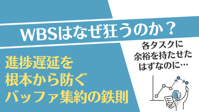 プロジェクトマネジメント 【PM必見】WBSの進捗遅延を防ぐ|バッファ集約と見積もりの実践ルール 2026年3月4日 hidechi 【PM・リーダーの悩み解決シリーズ(全4回)】プロジェクトを炎上・破綻させないための実践的なノウハウを4つのステップで解説します。 …