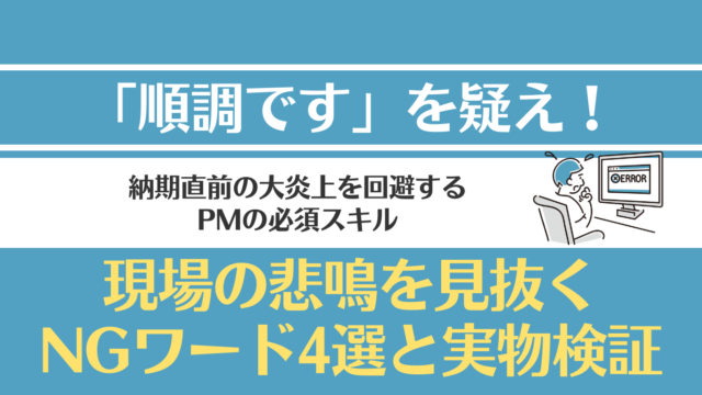 プロジェクトマネジメント 「進捗、順調です」は危険信号|悪い報告を引き出すチーム運営のコツ 2026年3月4日 hidechi 【PM・リーダーの悩み解決シリーズ(全4回)】プロジェクトを炎上・破綻させないための実践的なノウハウを4つのステップで解説します。 …