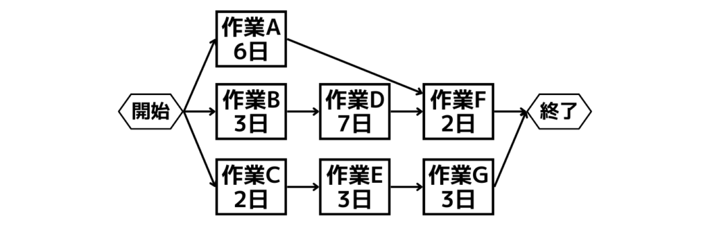 【AOA(アクティビティ・オン・アロー)のネットワーク図サンプル】