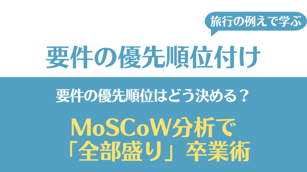 前回は、[要件定義シリーズ第5回:非機能要件の落とし穴]で、システムの品質(燃費や点検)について学びました。これで「やりたいこと(機能)」と「備え(非機能)」がすべて出揃ったわけですが、そのまま全部を叶えようとすると、プロジェクトは確実にパンクします。