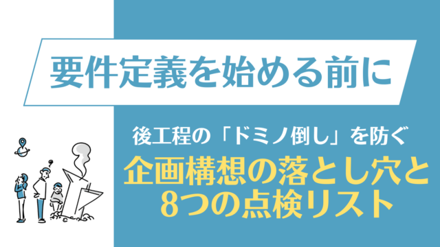 要件定義 要件定義の失敗は手前にあり!「企画構想」の落とし穴と8つの点検リスト 2023年1月27日 hidechi この記事は「要件定義の実践ガイド(全9回)」の第2回です。本記事は単体でもお読みいただけますが、システム開発の最難関である要件定義を成功 …
