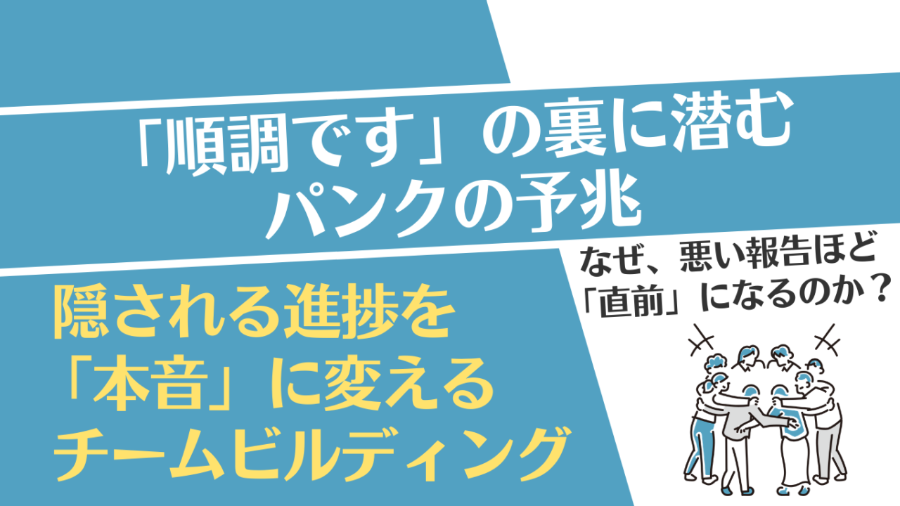多くのリーダーが経験する「直前の報告」への憤りはもっともですが、実は進捗が隠される原因の半分は、リーダー自身の振る舞いにある可能性があります。 前回の「仕組み」編に続き、今回はその土台となる「本音が言える関係性」を築くためのチームビルディングについて、私の失敗談を交えて深掘りします。